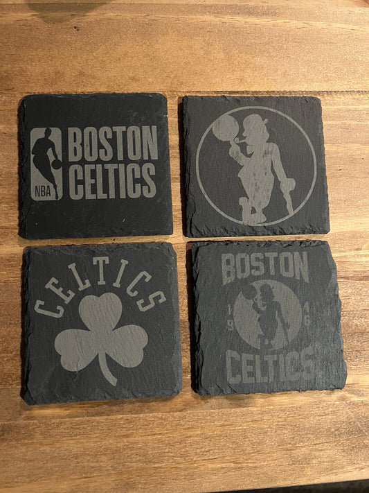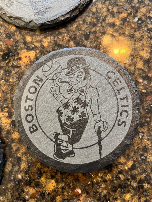Boston Celtics - 4 Pack Slate Coasters Set - Gift for Celtics Fan - Round Slate Coasters