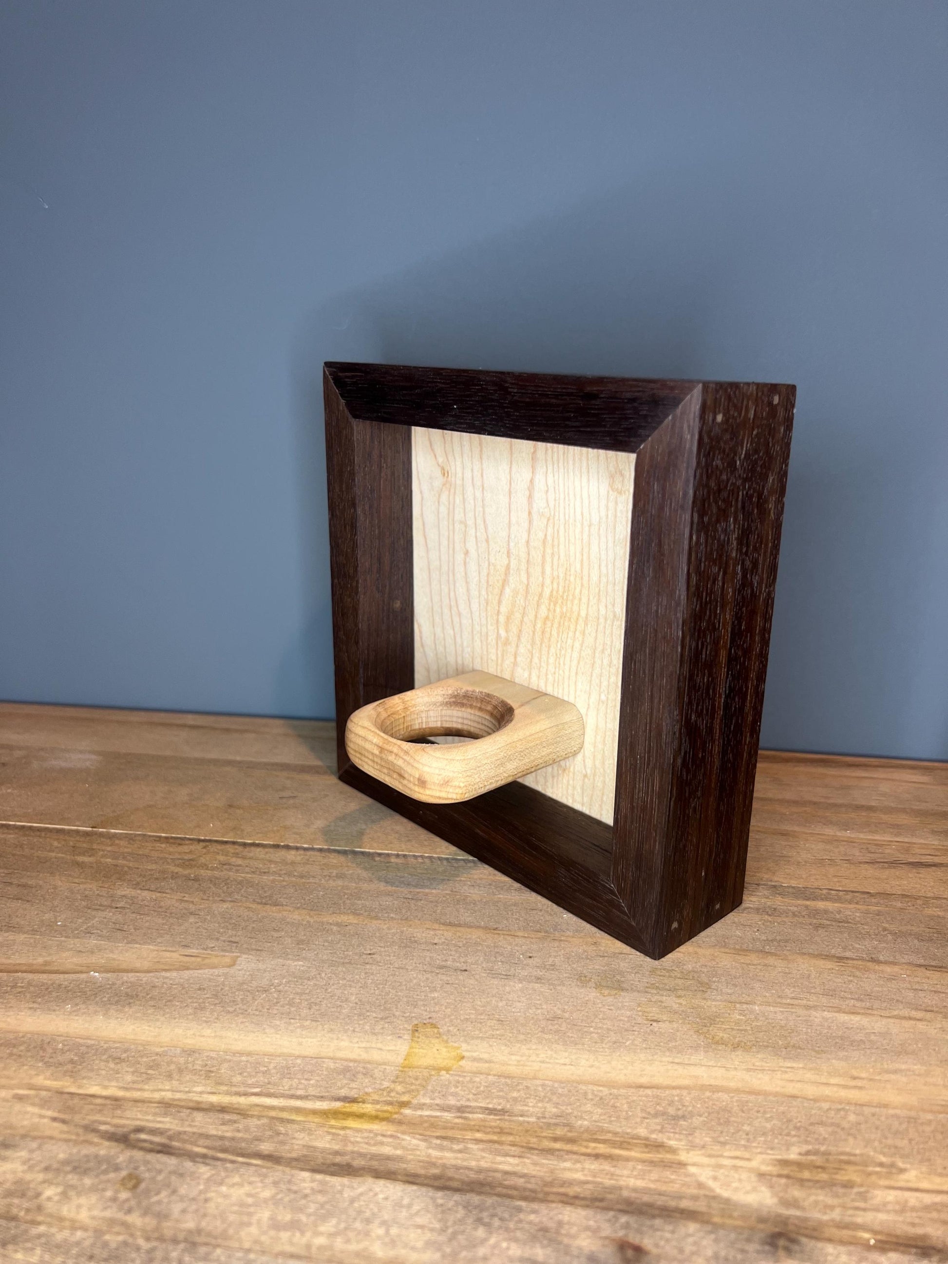 Made with Solid Walnut and Maple with hand shaped ball perch